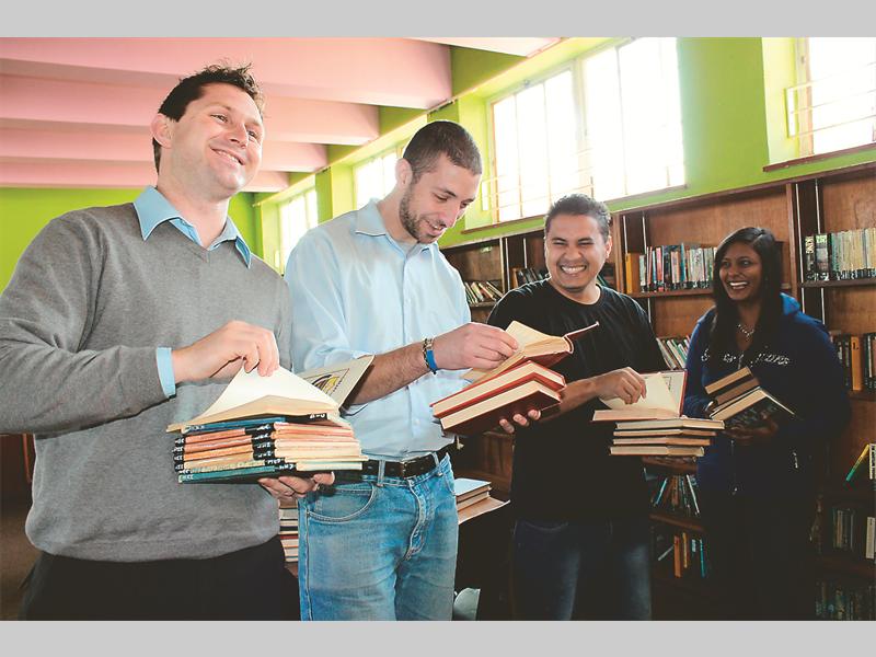 Volunteers Michael Merckel, Ryan Blumenow, Stefan Strydom and Teressa Govender were more than happy to sort through old books and help remove some of them from the library systems.