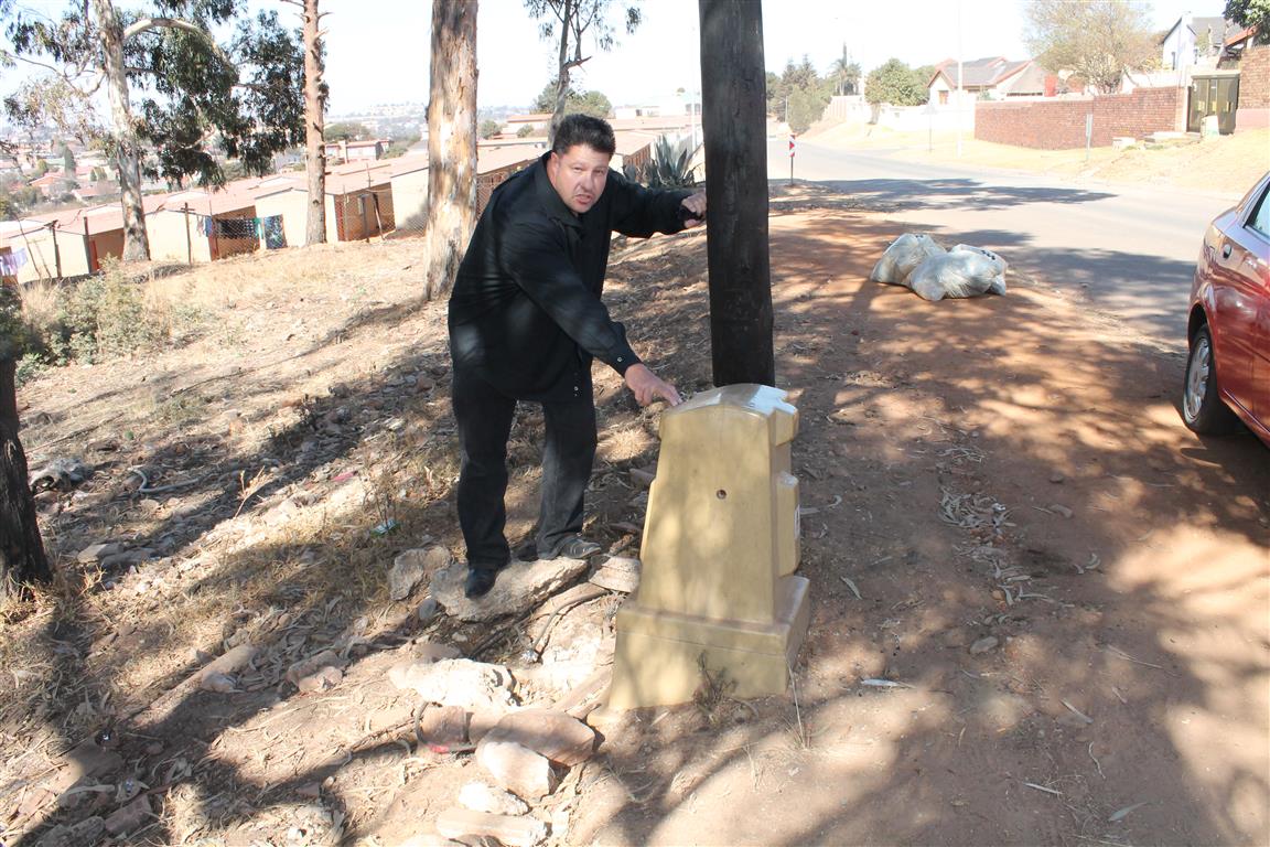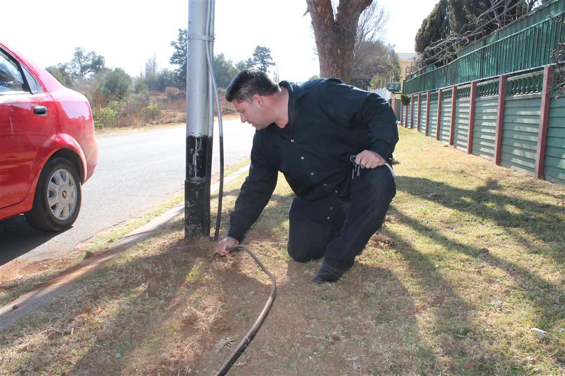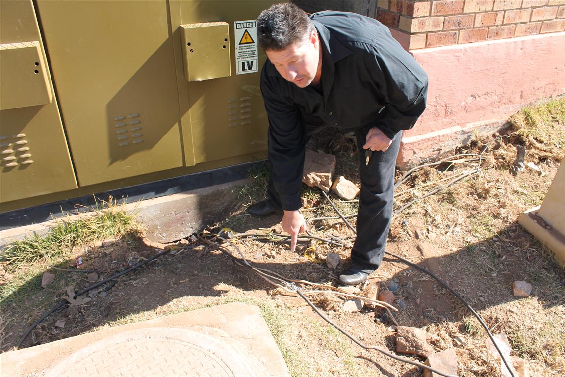 Home/Galleries/Shocking extent of electricity theft GalleriesNews galleries Shocking extent of electricity theft July 29, 2013 Riaan van Zyl Less than a minute Facebook X LinkedIn Tumblr Pinterest WhatsApp Telegram Share via Email Print Run, thief, run! Add as a preferred source on Google Councillor Gert Niemand points out one of many dangerous illegal conne connections. A live open illegal collection. It is visibly clear how the live connection has burned the post. A connection in Poplar Street, Lindhaven. If you touch this you’re dead. The cable runs in here… Into the wetland… Through the veld… and throug wetland streams. This cable was stolen. Another illegal connection. Niemand shows the live exposed wires that is accesible to anyone. Children play opposite the illegal connection point. From here the cables run, like all the others to Princess Informal Settlement. Another illegal connection. The Record spots too thieves in the action. And start bolting. The Record shoots while the Councillor drives. The other criminal heads for the bushes. Run, thief, run! Councillor Gert Niemand inspects the thieve’s handywork. A web of illegal onnections. Another live open cable that could easily be stepped on. Web of cables. Dodgy linking. July 29, 2013 Riaan van Zyl Less than a minute Facebook X LinkedIn Tumblr Pinterest WhatsApp Telegram Share via Email Print