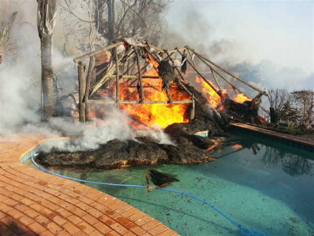 The home in Kasuur Street came off the worst as firefighters continuously battled to extinguish flames at the back of the house. A large area including the pool, a lapa and braai area as well as a few rooms were destroyed. A number of windows also were broken.