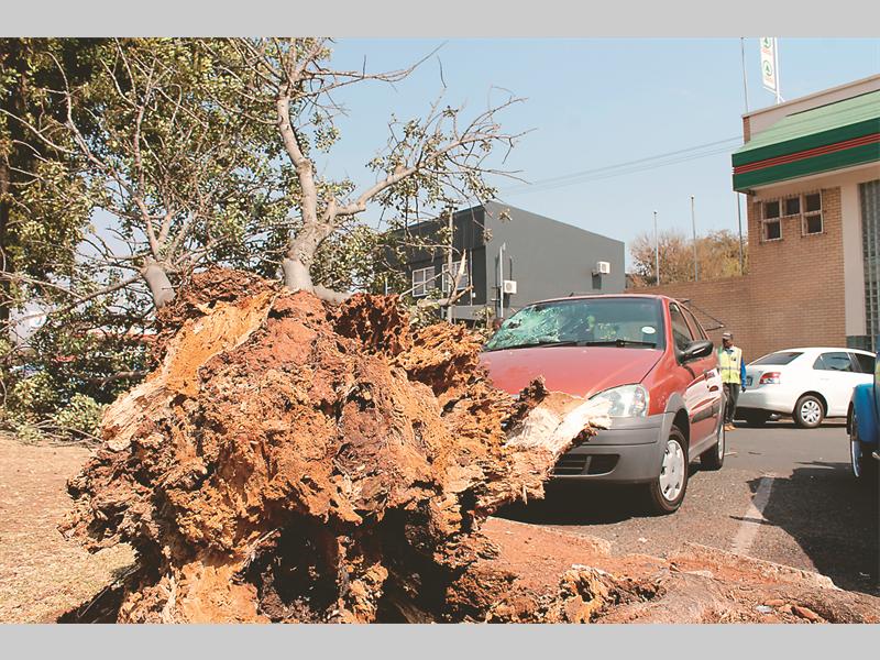 Kobus and Moneen de Jager made their last stop at the Witpoortjie Pharmacy on Generaal Pienaar Street at around 11am. Kobus, having recently had surgery on his shoulder, stayed in the Tata Indica parked in front of the Witpoortjie Spar. He was busy speaking to street vendor Peter Williams when they heard a snap and the tree fell on the right-hand side of the vehicle, smashing the windscreen.