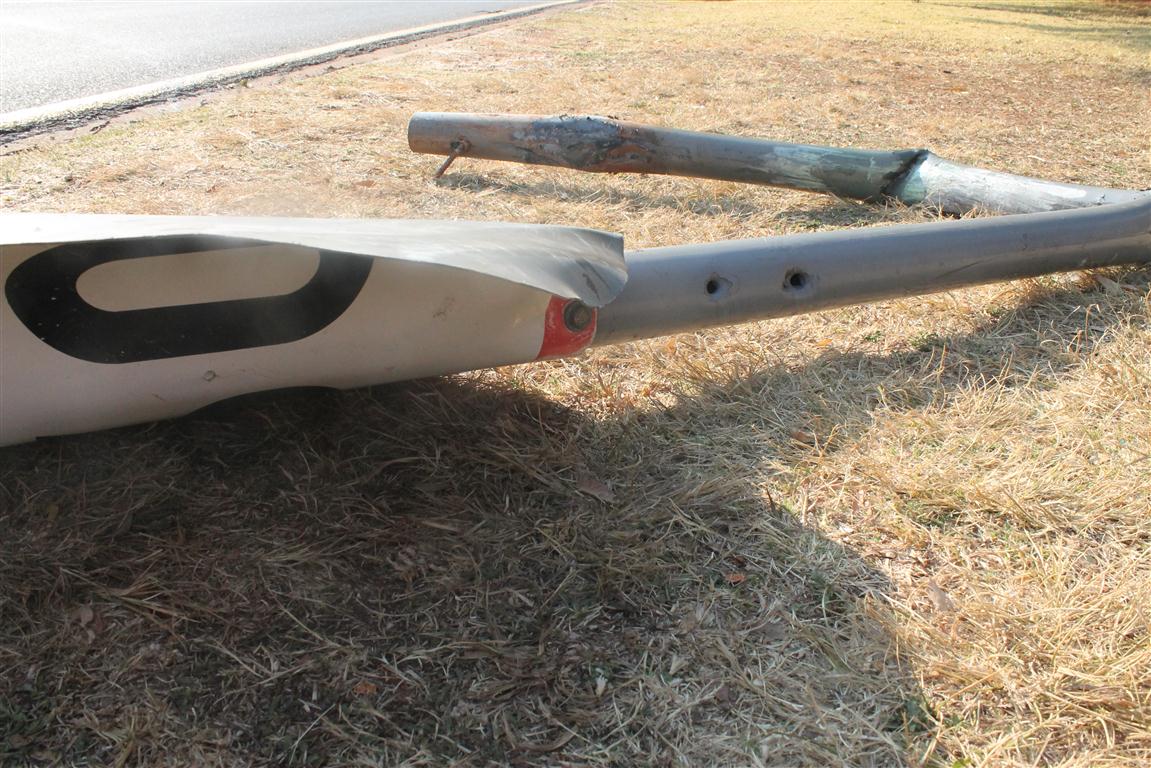 Op Vrydagoggend 30 Augustus is ‘n spoedteken (60km/h) minstens 500 meter vêr gesleep nadat ‘n motoris dit uitgery het. Die teken is glo oorspronklik op die erf van Bundy Smith (Ouklipweg 115) geplant en toe op die hoek van Felsparstraat op ‘n ander erf gevind.