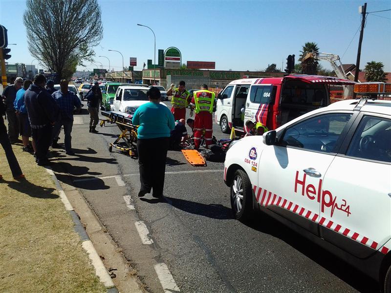 An elderly man believed to be in his 70s was knocked down by a motorbike on Ontdekkers Road at the corner of 13th Street in Delarey on 3 September, according to Vanessa Jackson, ER Crisis Communicator.