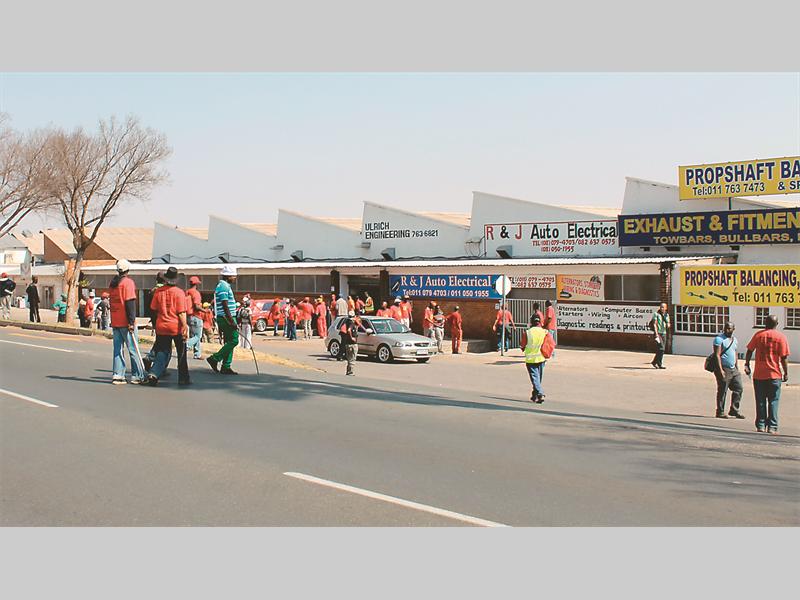 As the march proceeded down Albertina Sisulu Road towards Krugersdorp, workers at other businesses such as engineering companies, as well as motorists at service stations, were also intimidated by the knobkierrie-wielding army.