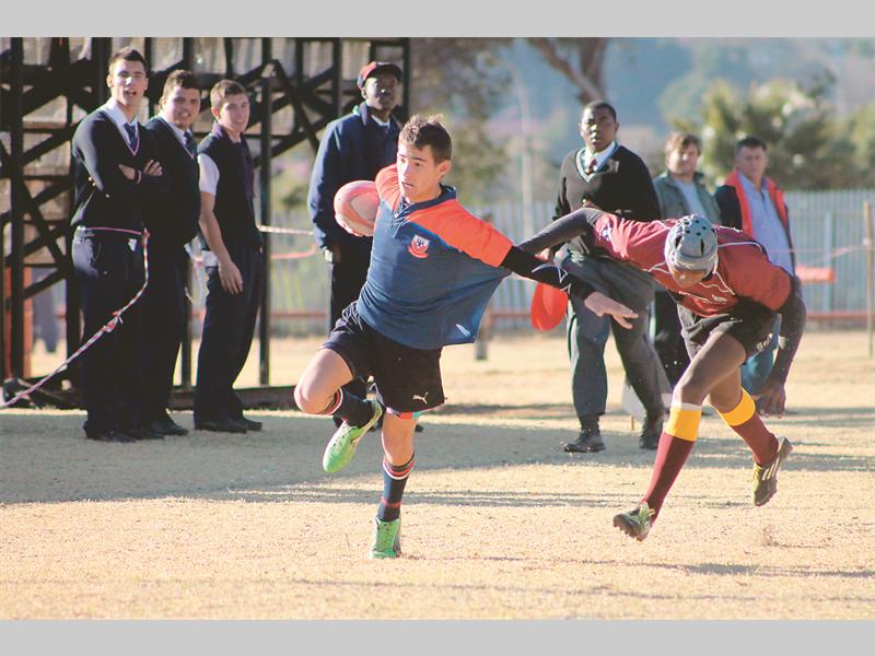 Henning Buitendag van Hoërskool Bekker, en senter van die B-hoërskolespan in aksie.