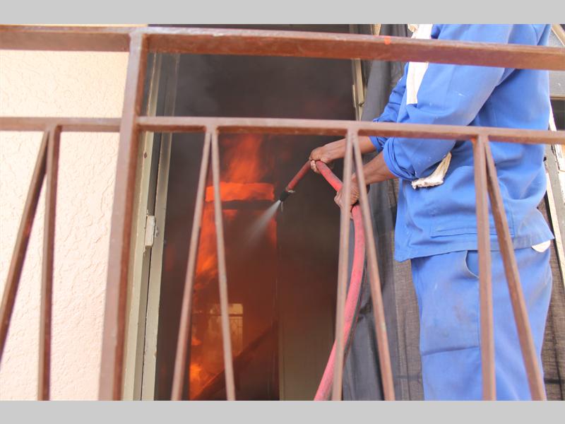 The fire is believed to have started just before 11am in flat number 12. Residents and Mercia Court manager Jaco Reigel contacted Johannesburg Emergency Services (EMS) but had to control the fire themselves in the meantime. Johannesburg EMS vehicles only arrived at 11.55am.
