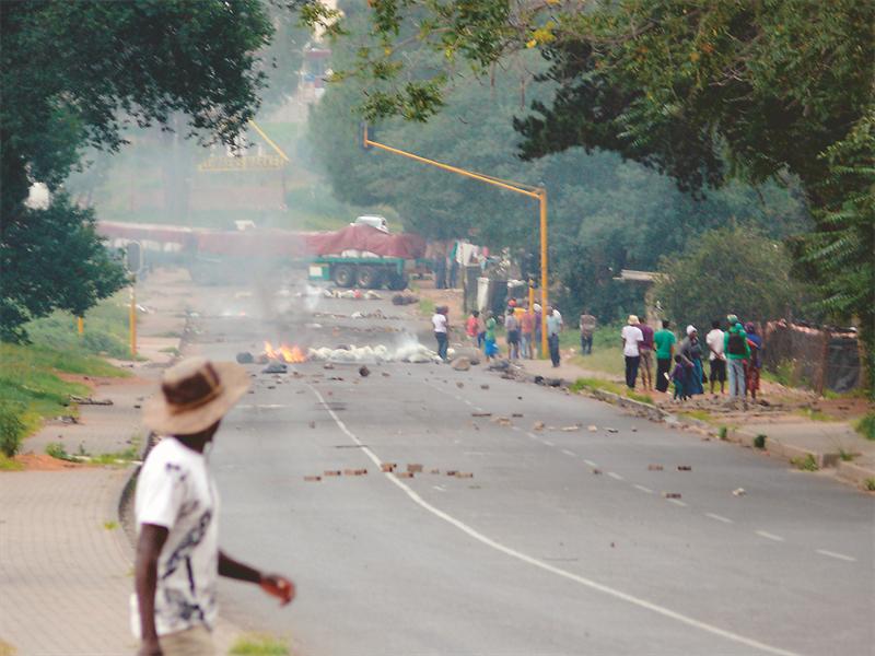 Once again Albertina Sisulu Road was rendered useless for traffic as tyres and logs burned across the road. The protesters were aggressive and the Record was warned not to get too close since they were pelting vehicles, police and members of the public with rocks.