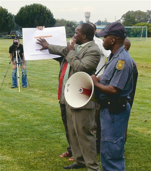 The meeting between the community of Plot Eight/Mhlangeni and MMC for Housing, Dan Bovu, that took place at 5pm on 5 February went down orderly under the supervision of a heavy SAPS contingent.