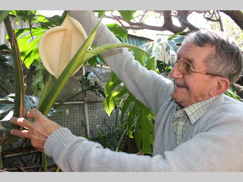 “Sover ek weet, kom dié rankplant ook nogal algemeen in Limpopo voor,” vertel De Lange. Die vrug en blom van dié plant stem baie ooreen met ‘n aronskelk aangesien die plant deel vorm van die Araceae familie waaraan onder andere die aronskelk of varkoor behoort. Navorsing op tuinmaakwebtuistes dui daarop dat die Delicious Monster aangepas is as ‘n huisplant vir versieringsdoeleindes. In hierdie geval blom die plant nie sommer nie, maar die blomme aan De Lange se plant is al sowat 20cm groot.