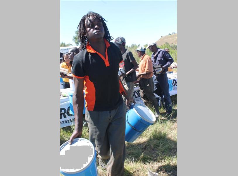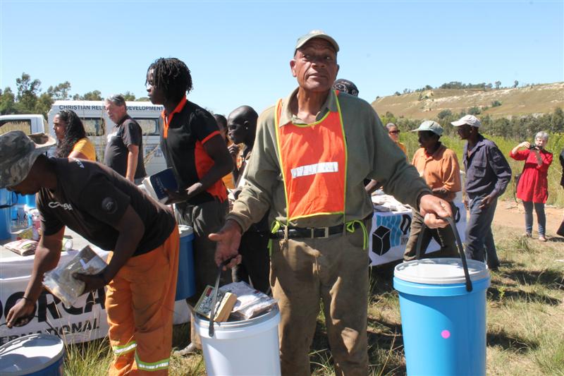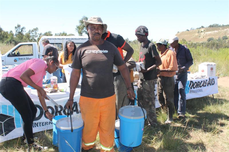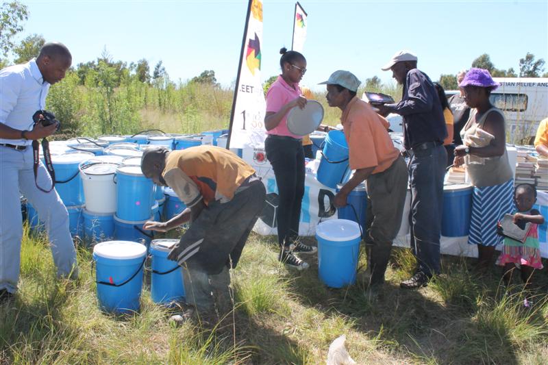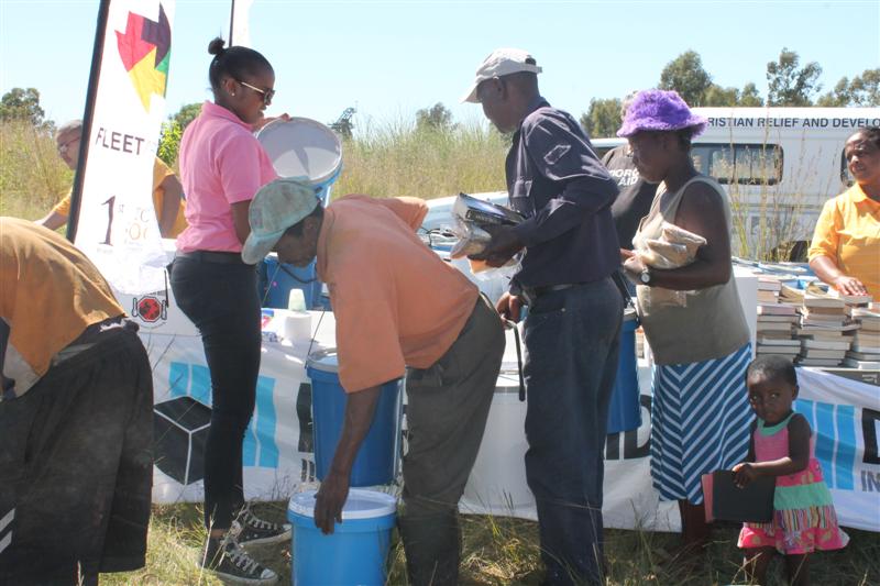 Dorcas Aid distributes Blue Buckets, filled by FleetAfrica.