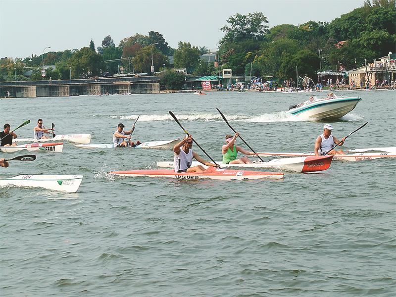 “The 12km race around the 1km perimeter dam was made exciting by motorboats circling to create waves simulating a surfski sea race.