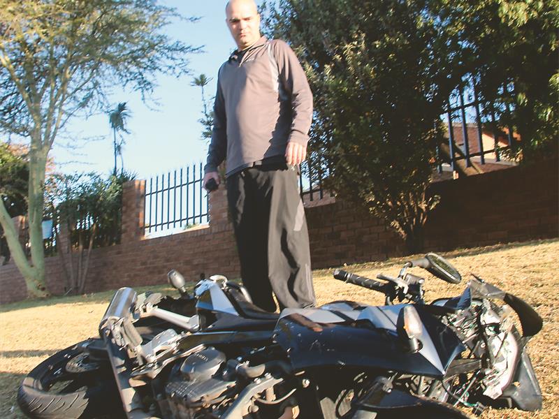 The black motorcycle, registration HZD 151 NW, was seriously damaged.