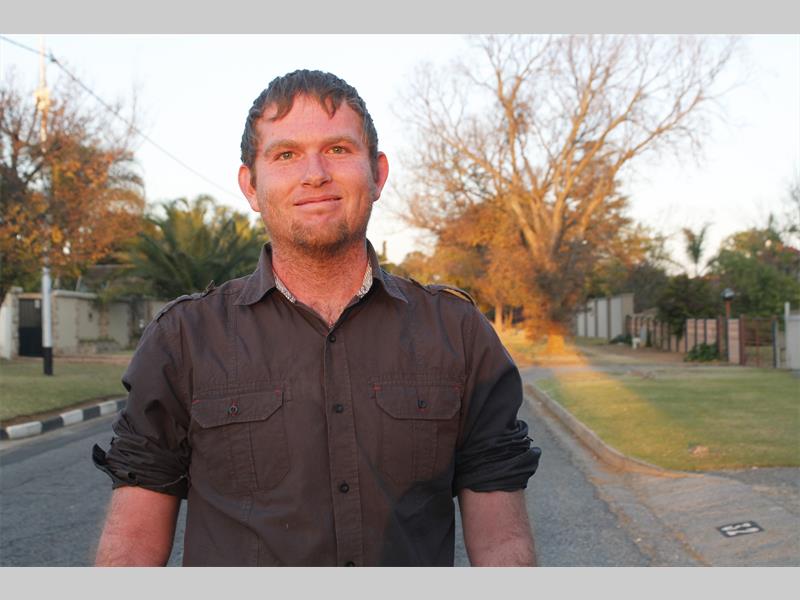 Francois Myburgh (24) welcomes all the help he can get when walks from Witpoortjie to Brits (North West) to create awareness about rhino poaching.