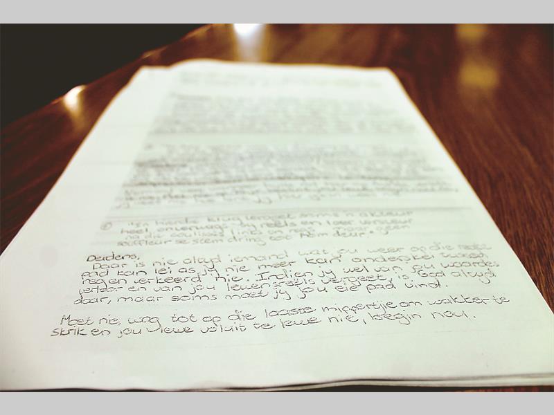 Volgens die woordvoerder van die skool, Ronel Bezuidenhout is dit “‘n afskrif van Jessica se matriek Afrikaanse voorgeskrewe mondelinge eksamen wat sy gelewer het weke voor die tragedie”.