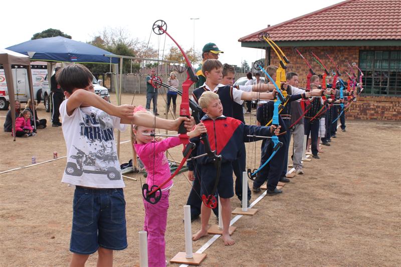 Kinders leer om te skiet by die Wesrand boogskietklub