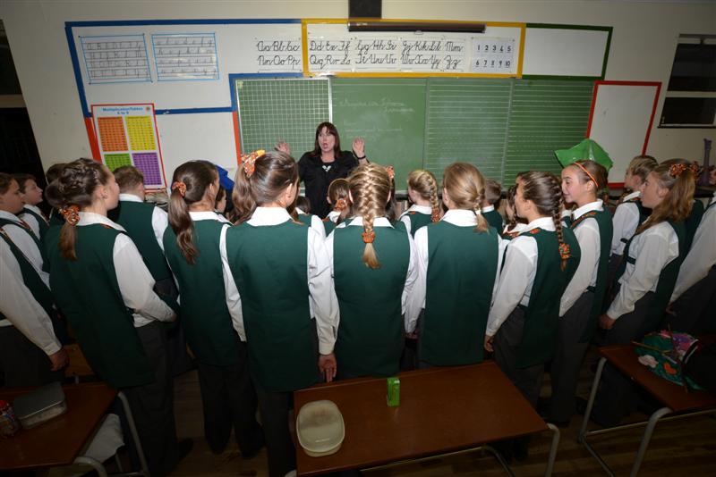 'n Roodie koor maak reg vir opname vir KykNet se nuwe 'Sing in harmonie'.