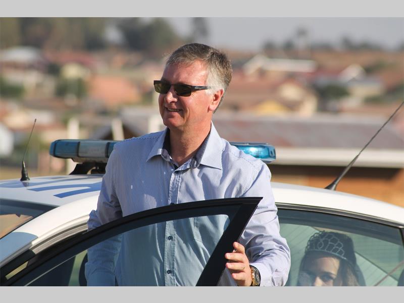 Dié jaar het hy per polisiemotor opgedaag, met nog ‘n tweede polisiemotor en ‘n Jeep aan weerskante. Hy is na sy stoel vergesel deur Roodepoort-polisiemanne sowel as die Meneer en Mejuffrou Bastion wenners, waar ‘n drankie aan hom bedien is.
