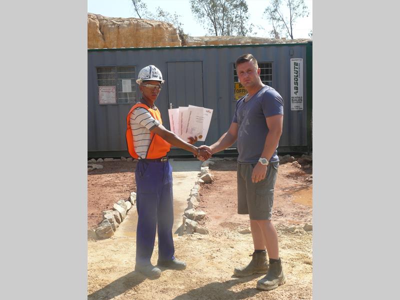 The training is a combination of theory and practice on site. Sidney Landman, site manger at Tshenolo firmly believes in his staff training and empowerment. The site Manager of Cross Border, Ditiro Neito, concurs.