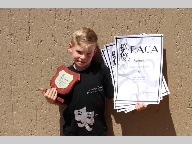 Michael was invited to the RACA awards ceremony out of thousands of children on 28 September. There he was named the category winner for prepared mime, category winner for English monologue and received an award of excellence for 4+ Diamonds. He also was named the overall individual winner of the pre-primary schools section.