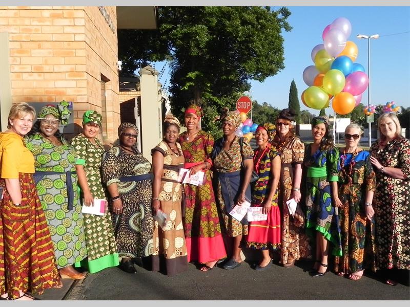 Nine Clover Mama Afrikas dressed in their own ‘designer’ dresses made during the week at Bernina were joined by Vlok and her team to hand out a “We care a square at a time” pack to fellow Clover colleagues arriving for work.
