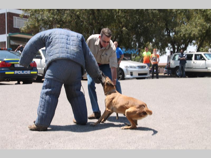 The public was entertained by a police dog demonstration and free dog food were handed out.