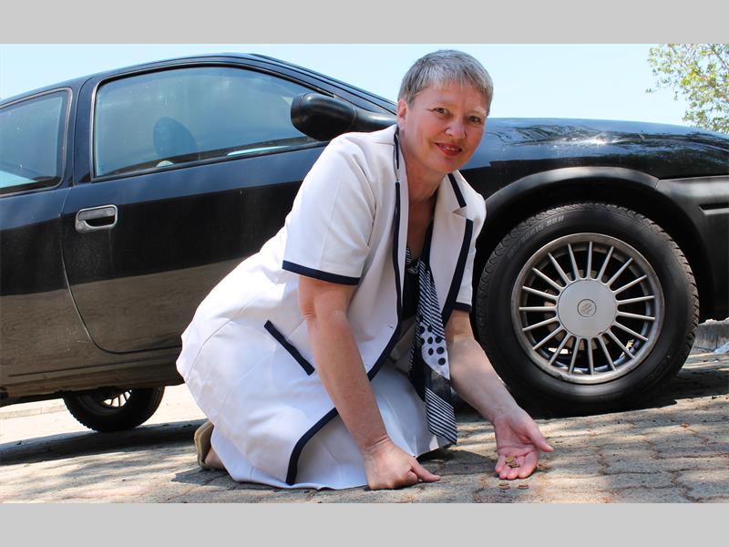 Her dream of one day owning a vehicle with which to transport her son is tied to finding rands and cents on chipped sidewalks on the streets of Florida. Grieb is an avid churchgoer and after reading about a woman succeeding in buying a secondhand vehicle with small change in a weekly magazine she told her dominee, “This is what I have to do”.