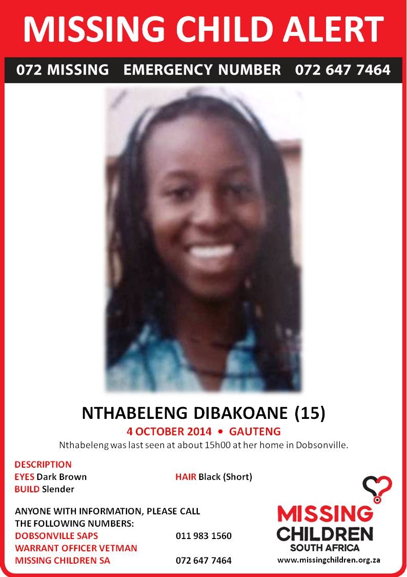 Nthabeleng Dibakoane, 15, was last seen at her home in Dobsonville at around 3pm on 4 October.