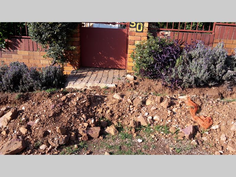 Ongeveer vier weke gelede het ‘n Telkom-span ywerig ‘n sloot reg voor haar huis gegrawe wat onder andere toegang tot haar voorhek belemmer. Die sloot is van ‘n mini-sentrale af na die pad toe gegrawe.