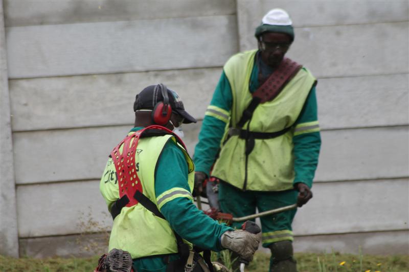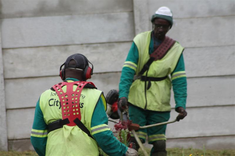 A team from Joburg City Parks hard at work to clean up Christiaan de Wet Road. Photos: Mathilde Myburgh.