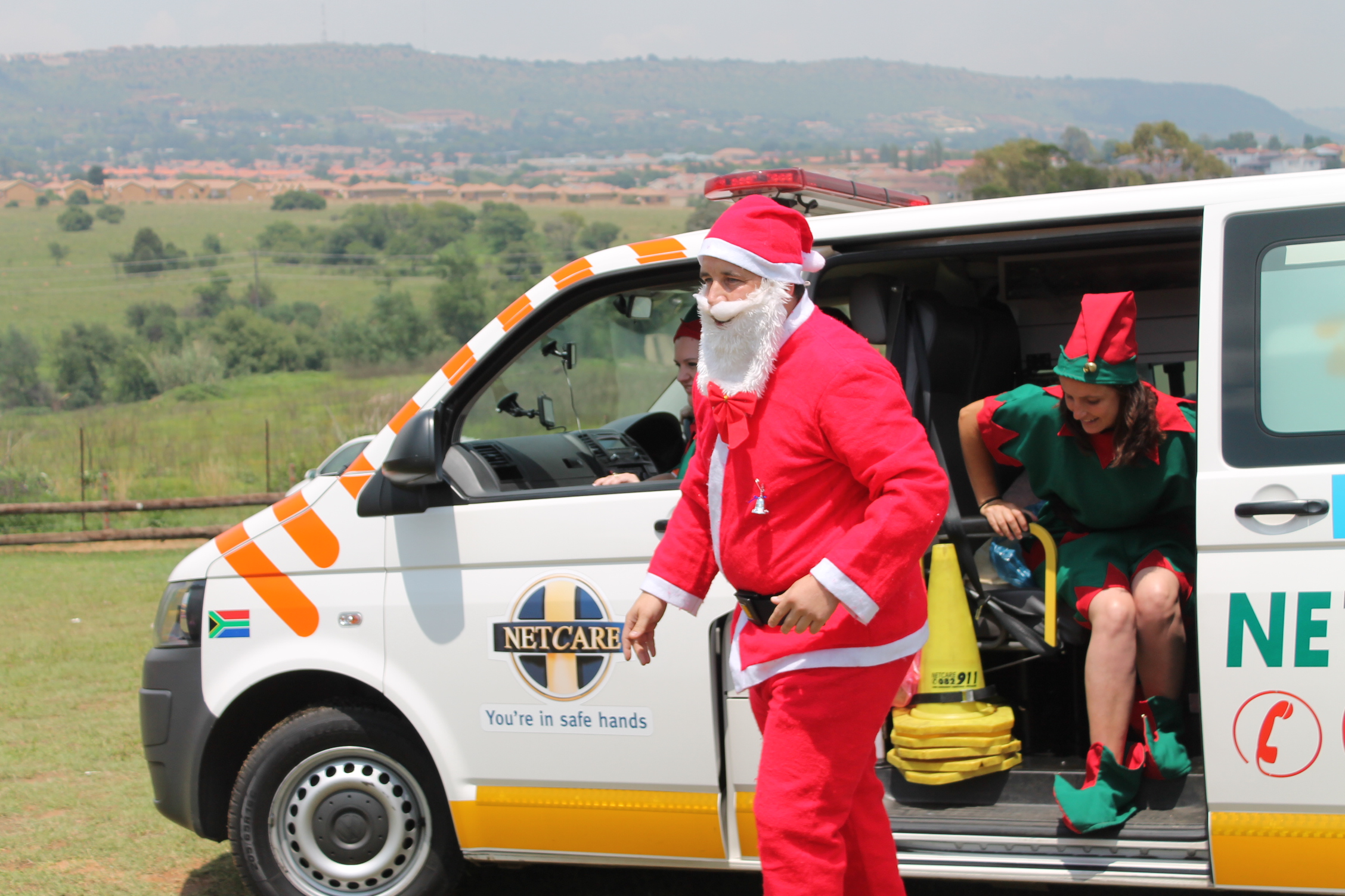 Father Christmas arrived at the party with flashing lights and sirens wailing courtesy of Roodepoort’s Netcare911.