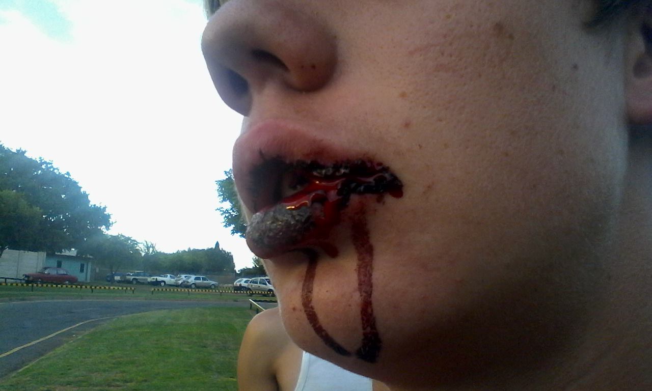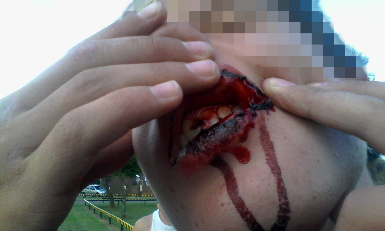 Photos of the son, 15, that is in Grade 8 in a school in Mindalore were posted at 8pm on Monday night 12 January. The photos show how his lip is bleeding heavily.
