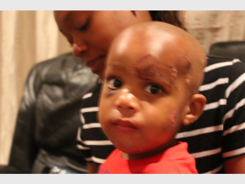 Thabo was playing with his ball in the yard when the dog, who was roaming the street, ran towards the toddler and started to attack him.