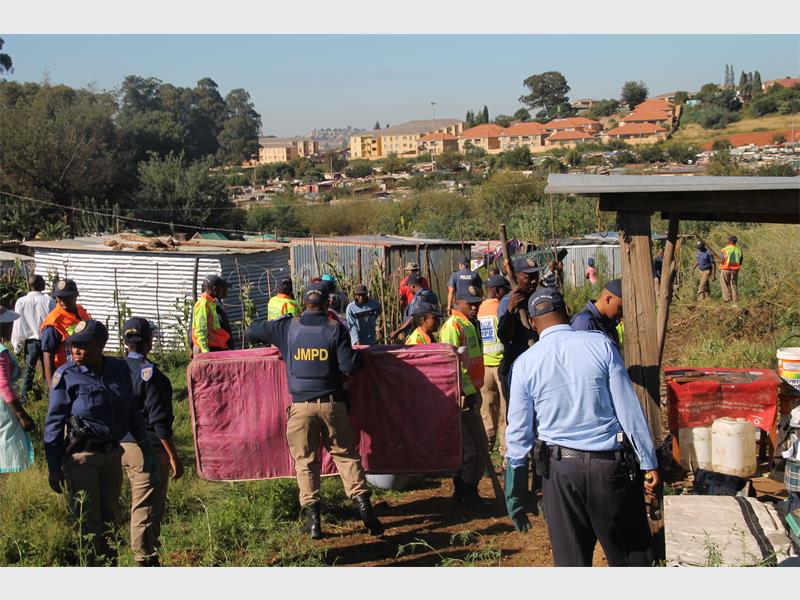 The Metro Police, who has to enforce by-laws, was instructed by the Department of Housing to destroy the shacks. They in turn asked the police to join the operation in order to keep the peace.