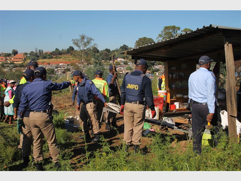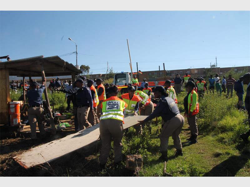 The Metro Police, who has to enforce by-laws, was instructed by the Department of Housing to destroy the shacks. They in turn asked the police to join the operation in order to keep the peace.