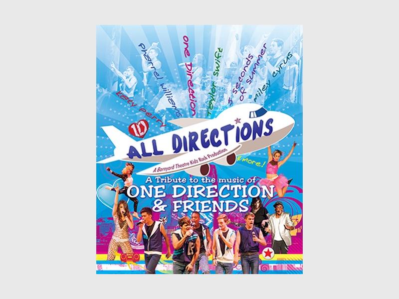 All Directions features a 12- piece cast with Barnyard musicians, singers and dancers that pay tribute to the One Direction songs One Thing, Live While We’re Young, Best Song Ever, Story of my Life, Steal my Girl and many more.