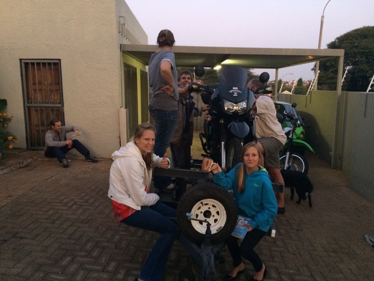 With just hours left until they get on their motorbikes and head off to Angola, Cobus Botes, Steve Prinsloo, Wayne Allan Laatz, Johan Booysen and Tammy-Leigh Booysen spent some time with their family and friends on Wednesday night.