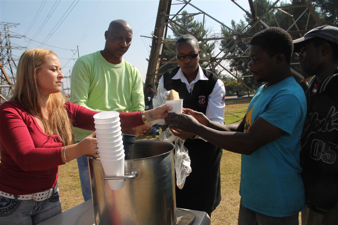 According to Saduma’s Sales and Marketing Manager Charlene Lessing the idea is to not just bring temporary relief by filling hungry stomachs but to make a long term impact by giving those less fortunate hope and dignity. Lessing said she uses the soup kitchen as an opportunity to record the names and skills of those who they feed and then put it on to a database. Once they are fingerprinted and have passed a polygraph test she will in turn promote them with Saduma’s client base.