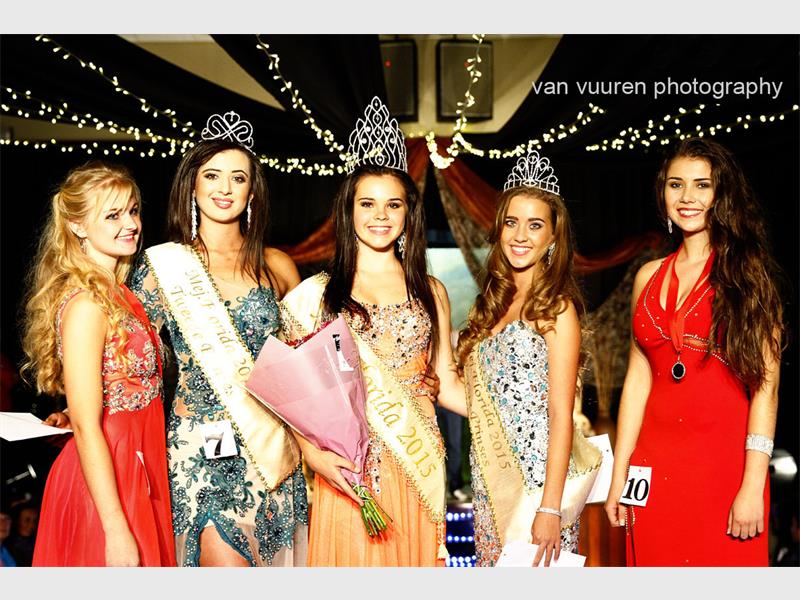 · Mejuffrou Florida Senior: Elindi Bezuidenhout met Bernelee Jansen van Rensburg, Temieke Streicher, Monique Griffith en Danielle Fouché as haar prinsesse