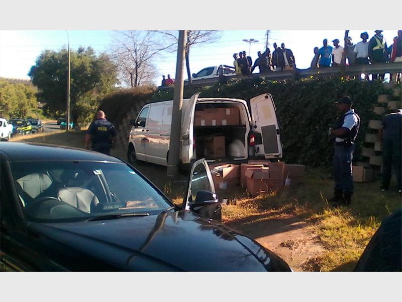 The suspects fled with the British American Tabacco (Bat) truck while other gang members followed in a white BMW and charcoal metallic Fortuner. The police vehicle gave chase and as the hijackers sped down Killburn Street past Hoërskool Roodepoort, another unsuspecting police captain was driving from the opposite direction. The suspects panicked and shots were fired between them and the captain.