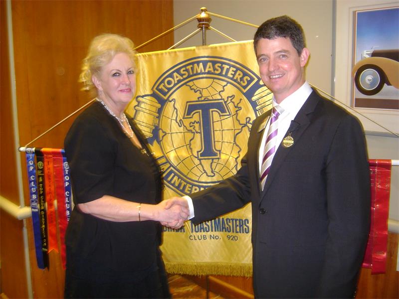 Special gust, lieutenant governer of education and training Paul Jensen presented acting president Dawn Hemming with the Toastmasters award for Toastmaster of the Year.