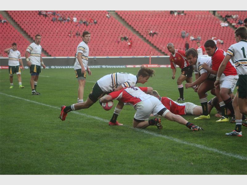 Hoërskool Bastion and Hoërskool Linden battle it out at Ellis Park.