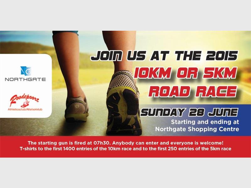 Free T-shirts will be handed out to the first 1400 contestants as the Roodepoort Athletics Club hosts its annual Northgate road race.