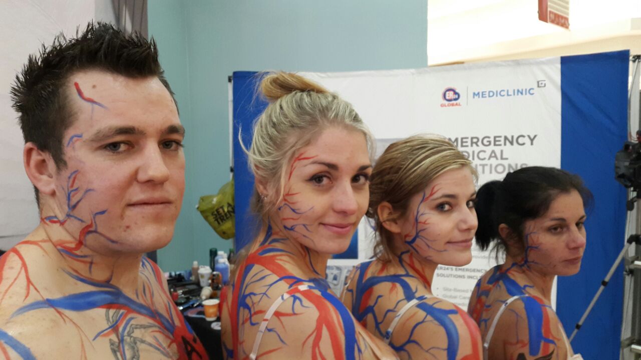 Meiring stated the heart and vascular systems were painted on models before they walked through the mall which made onlookers eager to take pictures of them with their cell phones.