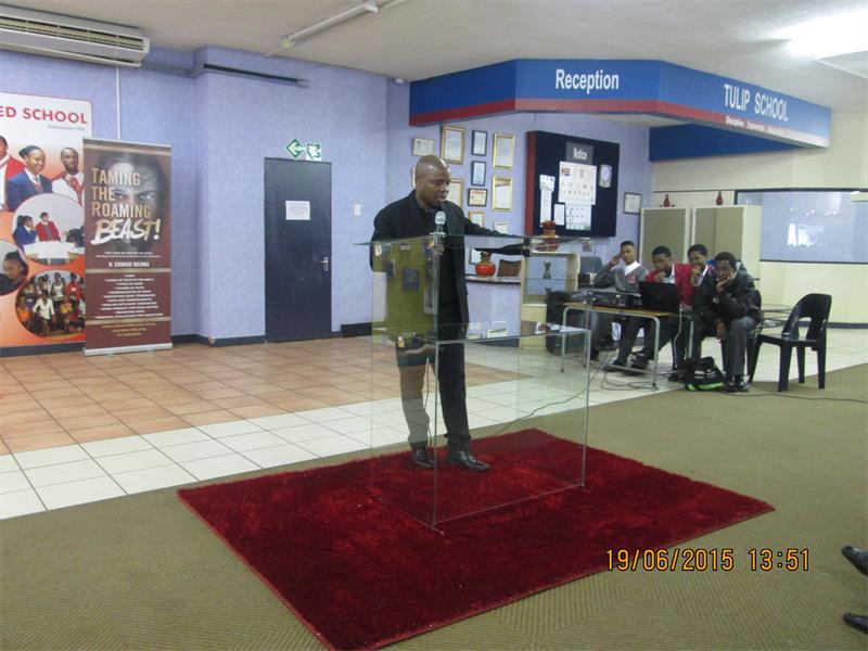 The event was held at Tulip Combined School in Van Wyk Street and the hall was filled to capacity with male pupils and men from all walks of life. Speakers from Fear Free Life and the Davidsonville True Man Forum warned the boys about drugs, alcohol, violence and drug use, specifically nyaope, a white powdery street drug unique to South Africa. The guest of honour who graced the event was Dr Ezekiel Mathole from Grace Bible Church and Pastor Edward Ikeomu, who is also an author.