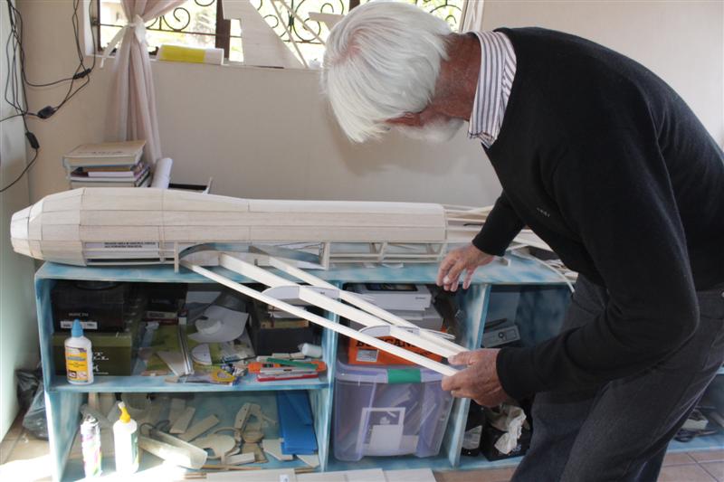 Sonder enige ervaring, maak Gert die mooiste model vliegtuie uit balsehout. Die modele is 1.5 meters lank, weeg 3.1 kilogram en kan 300 meter hoog vlieg.