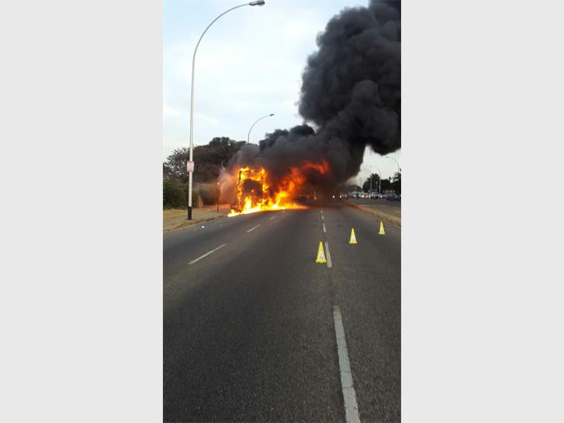 ER24 paramedics tried to extinguish the fire, but could not tame it and the bus was soon engulfed in flames.
