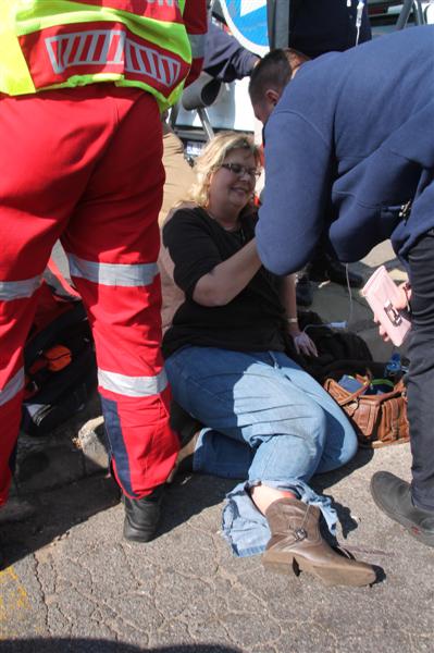 The woman’s leg was broken just above her ankle at a 45 degree angle.