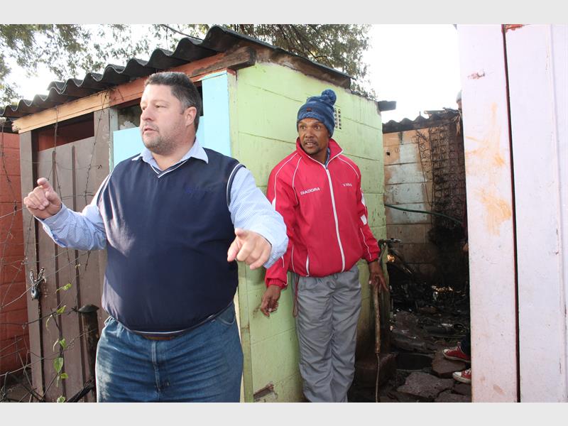 The real problem, however, isn’t a faulty sewerage line but the state of the council properties and their yards — filled with up to 10 shacks around each council house. It is understood these shacks are rented out at R300 or R400 a month. The shacks are illegally connected to the old sewerage line on which they’re built, extension chords hanging from roof to roof to supply electricity to the people. Between the shacks the grass is eroded with damp old carpets scattered on every premises. The scenery reminds of entering a regular informal settlement.