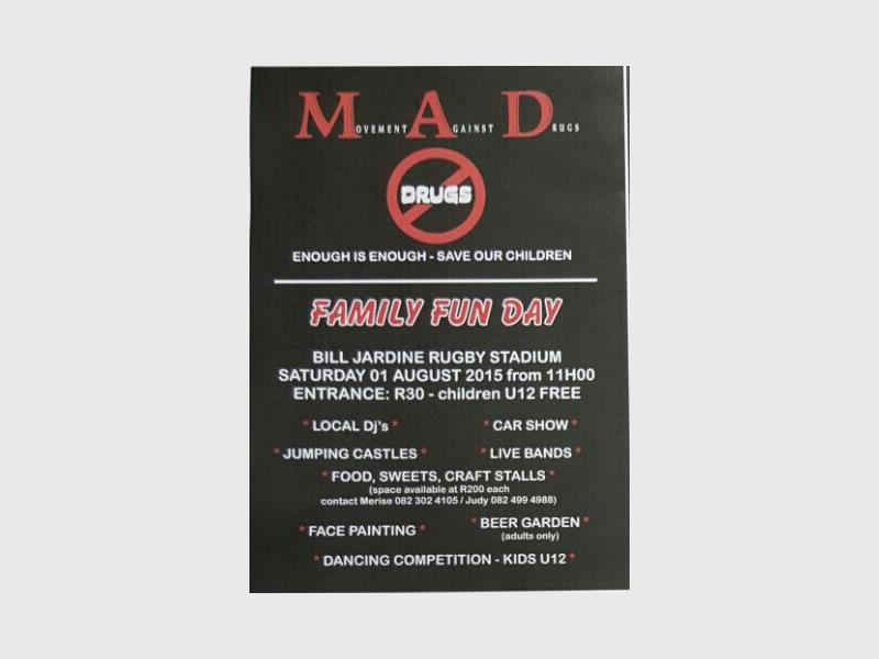 The Movement Against Drugs (M.A.D) will be hosting a family fun day this weekend at the Bill Jardine Rugby Stadium in Wibsey Dip.