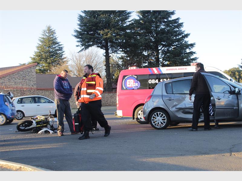 The motorcycle rammed into the side of the vehicle. ER24 paramedics were on the scene and assessed the situation.