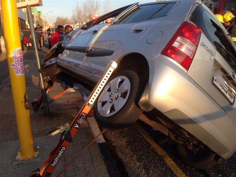 The rescue officers had to make use of stabilisers to ensure the vehicle is stable enough to remove the female driver from the vehicle.